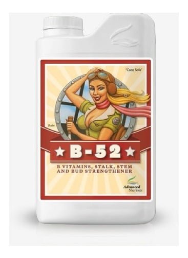 [vc_row][vc_column][vc_column_text]*- B-52 de Advanced Nutrients es un potente estimulador a base de Vitaminas del grupo B, extracto de Kelp (aminoácidos), ácido húmico y fúlvico y un amplio espectro de nutrientes, activa el crecimiento y la floración acelerando el metabolismo de las plantas y los procesos de fotosíntesis. Las propias plantas ya generan vitamina B pero si las ayudamos en este proceso con un aporte extra haremos que la planta pueda multiplicar su crecimiento, al no tener que generar ellas mismas todas esas vitaminas, se pueden centrar en crecer, simplemente, ya que ya les damos la vitamina que necesitan para ello. Pasaran mas rápido a la etapa de floración. Este multi-vitamínico está formulado con 6 vitaminas tipo B, extracto de kelp, ácido fúlvico, diferentes nutrientes y ácido húmico que garantizan una gran potencia para tus plantas. – Ayuda en el desarrollo del crecimiento radicular, así, las plantas absorberán mejor los nutrientes de los abonos y del medio. – Impulsa la fase de crecimiento y floración. – Protege a las plantas en momentos de estrés causado por varios factores como: Luz intensa Cambios climáticos, tales como fuertes vientos, exceso de lluvia. Climas extremos con altas temperaturas o bajas temperaturas Exceso de sales por acumulación por restos de fertilizantes Además acelera el metabolismo de tus plantas lo que repercute en su sistema inmune provocando que crezcan sanas y fuertes. *Modo de uso: * 2ml por litro de agua en todas las semanas de la fase crecimiento y en las semanas 3 a 6 de la fase de floración. * Presentaciones Disponibles: 250ml, 500ml, 1 litro y 4 litros.[/vc_column_text][/vc_column][/vc_row]