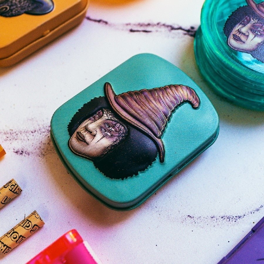 Lata Mini Tin Metal Lion Rolling Circus Mini Tin Box Lata contenedor para guardado. El tamaño perfecto para que lleves en tu bolsillo lo que verdaderamente importa. Tamaño: Largo: 6 Cm. Ancho: 5 Cm. Alto: 1,5 Cm. EDGAR ALLAN-AMARILLO TORA TORA-VIOLETA MR. TRAMPOLINE-NARANJA SILVERFUCK & JELLYBELLY-CELESTE RUBY-VERDE SEXY SADIE-ROSA