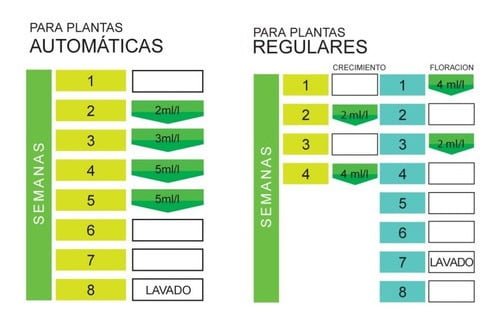 * Recomendaciones de uso: Para plantas en Exterior se puede emplear hasta entrada la 2da. semana de la aparición de las primeras flores. Se puede aplicar de manera foliar, intercalando con los riegos. No mezclar este producto en el mismo riego con otros productos.
