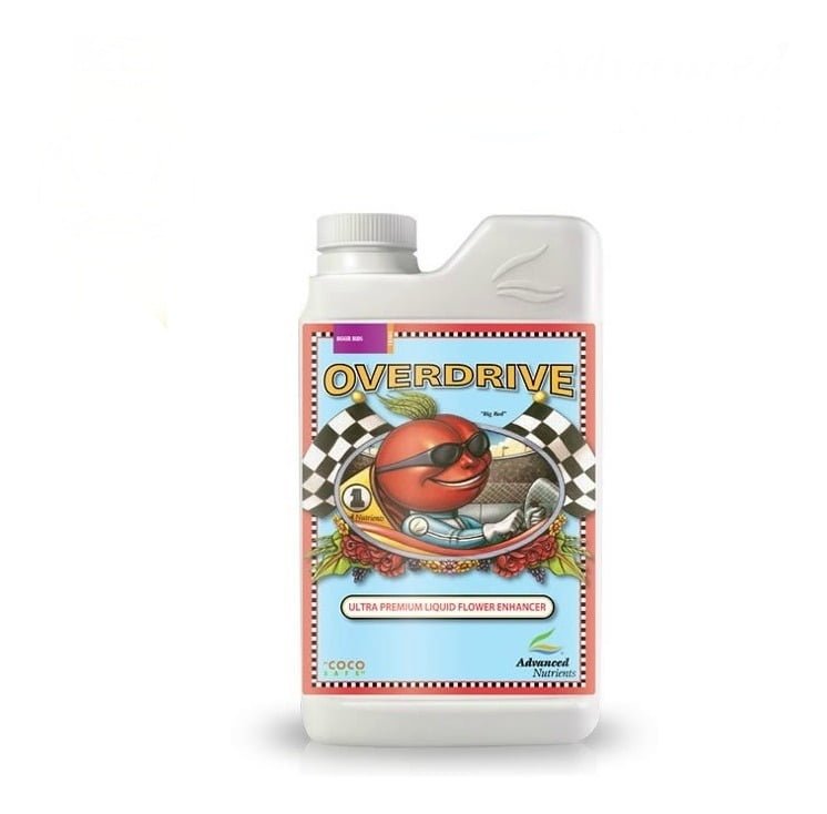 - Overdrive es un fertilizante especial para mejorar la floración; tras su aplicación, engordarán las flores que se han estado formando durante el primer mes de floración. Resultados óptimos garantizados. Se aplica cuando sólo queda finalizar la floración; es decir, cuando los cogollos ya están formados y necesitan un aporte extra de Fósforo y Potasio para crear una explosión de nuevos cálices cubiertos de tricomas. Ayuda a generar resinas y terpenos que potenciar los sabores y aromas de las plantas además de influir en el peso final 🌿