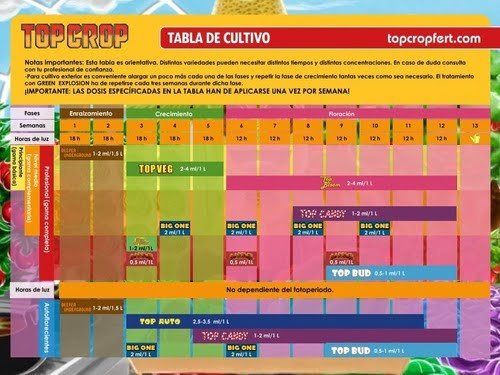- Top Bud de Top Crop es un PK para mejorar la fase final de la floración de nuestras plantas, obteniendo mayores resultados en la cosecha, sea que cultivemos en interior o exterior. Su NPK es específico para engordar las flores, esta privo de nitratos y rico en PK y aminoácidos esenciales, que aportan una mayor producción y aumentan el tamaño general de los frutos en toda la planta. Obtendrás cosechas masivas y súper sabrosas gastando muy poco producto. Es altamente concentrado y mantiene un alto nivel de pureza, solo tendremos que añadir al agua de riego de 0,5 hasta un máximo de 1ml de Top Bud por cada litro de agua, aplicándolo solo una vez por semana en conjunto con los demás fertilizantes de la tabla. Uso en sustrato hidropónico o fibra de coco.